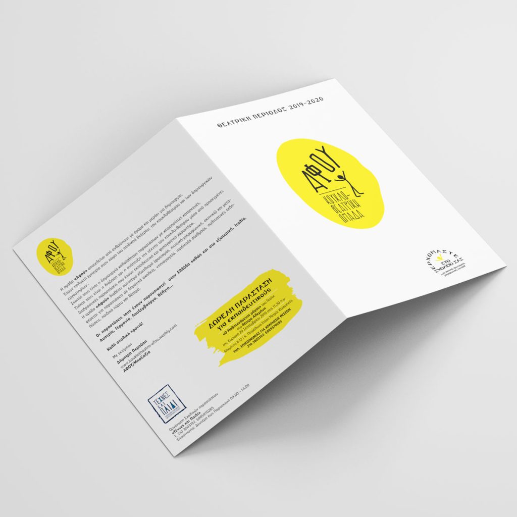 Η συνεργασία με την ομάδα Αφού συνεχίζεται! Σχεδιάσαμε leaflet για την προώθηση 2 παραστάσεων της ομάδας. Ο Μαθητευόμενος Μάγος του Γαίτε και ο Οδοντοχαλάστρας & η Γλυκοσυμμορία του.
