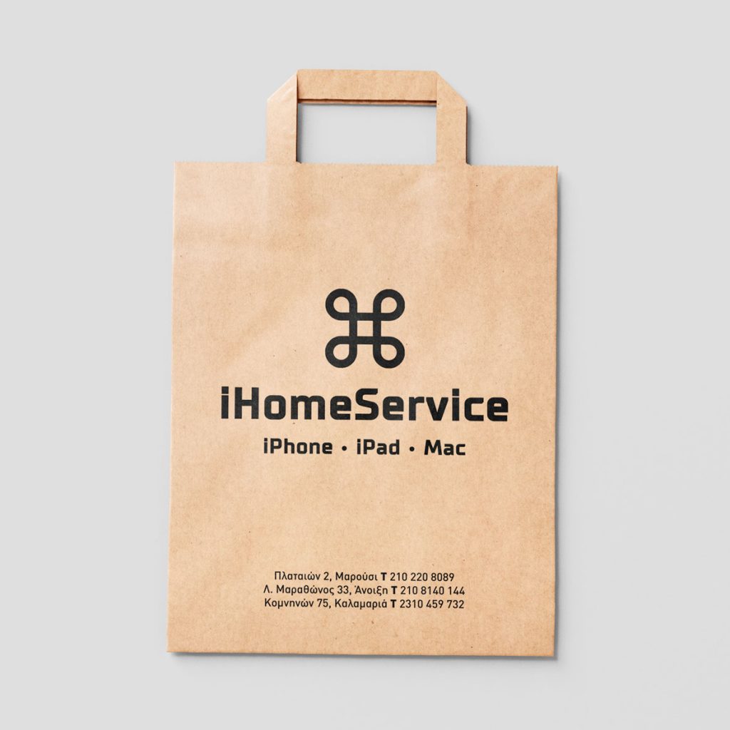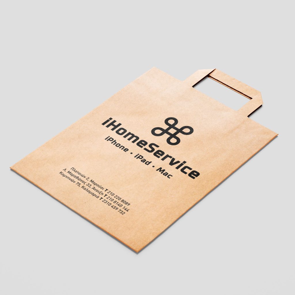 Η επιχείρηση iHomeService, εδρεύει στο Μαρούσι, με ακόμη 2 υποκαταστήματα σε όλη την Ελλάδα. Eίναι τεχνικοί υπολογιστών – κινητών που ειδικεύονται στην επισκευή iphone κατ΄οίκον, επισκευή ipad, επισκευή mac, αναβάθμιση mac, iphone service. Εκτυπώσαμε για την εταιρία, χάρτινες σακούλες κραφτ με το λογότυπό τους, συμβάλοντας έτσι και στην προστασία του περιβάλοντος που τόσο έχουμε ανάγκη
