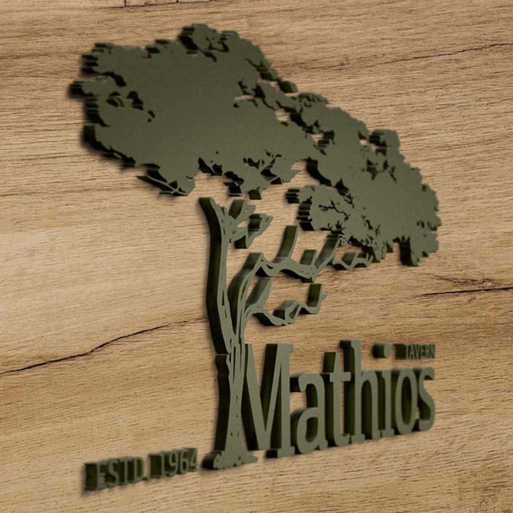 Mύκονος, στον Τούρλο, στο νέο λιμάνι, η ταβέρνα του Μαθιού μετράει πάνω από τρεις δεκαετίες ζωής. Ο χώρος θυμίζει παλιό μπακάλικο και η κουζίνα προσφέρει μεγάλη ποικιλία Eλληνικών πιάτων και μαγειρευτών. Κλασική επιλογή των ντόπιων για την εκτός πόλης έξοδό τους. Μας ζήτησε να σχεδιάσουμε νέο λογότυπο για το χώρο του, παντρεύοντας το παραδοσιακό με το μοντέρνο. Με γνώμονα την επιβλητική Αγγελική (όμορφο, πλατύφυλλο & αειθαλή μικρό δέντρο) που δεσπόζει στην αυλή του, καταλήξαμε σε ενα αντιπροσωπευτικό για τον χώρο Logo!