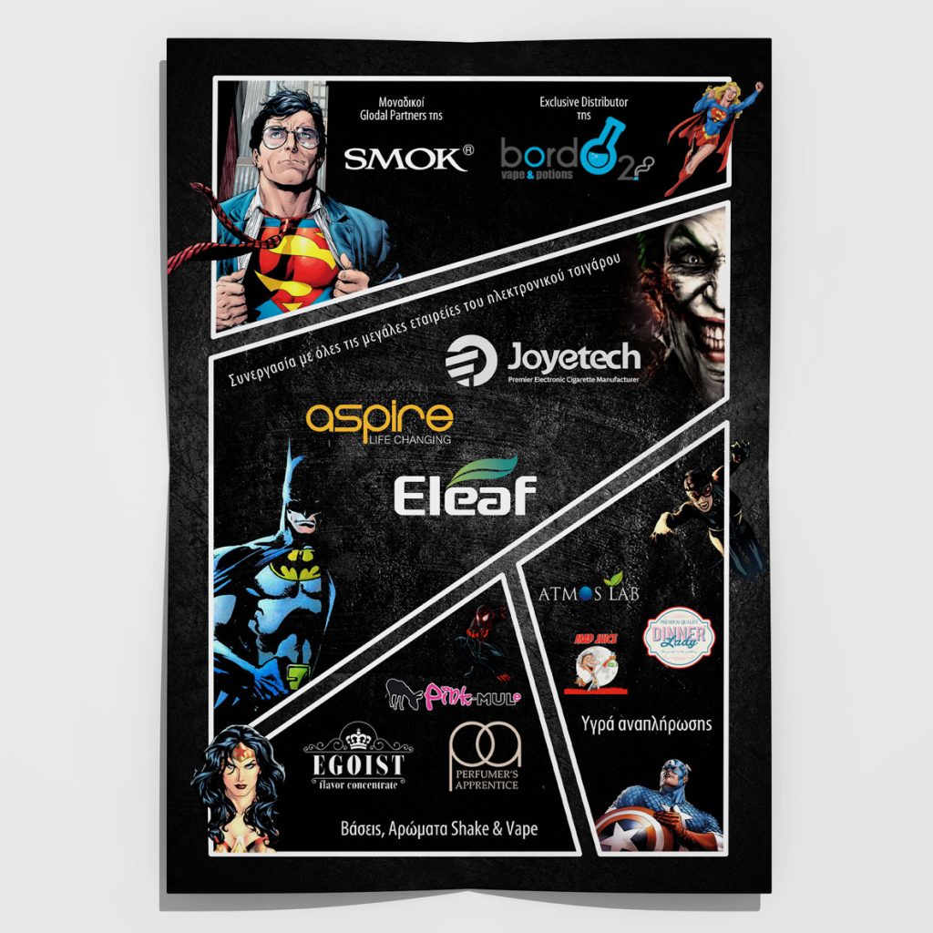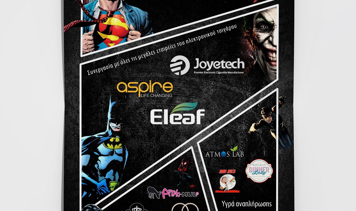 Συνεχίζοντας την πολυετή συνεργασία μας με την Vapormania, τη Νο1 εταιρεία στο ηλεκτρονικό τσιγάρο στην Ελλάδα, σχεδιάζουμε Posters, για τα νέα προϊόντα που κατά καιρούς προσθέτουν, στην ήδη πλούσια γκάμα τους!